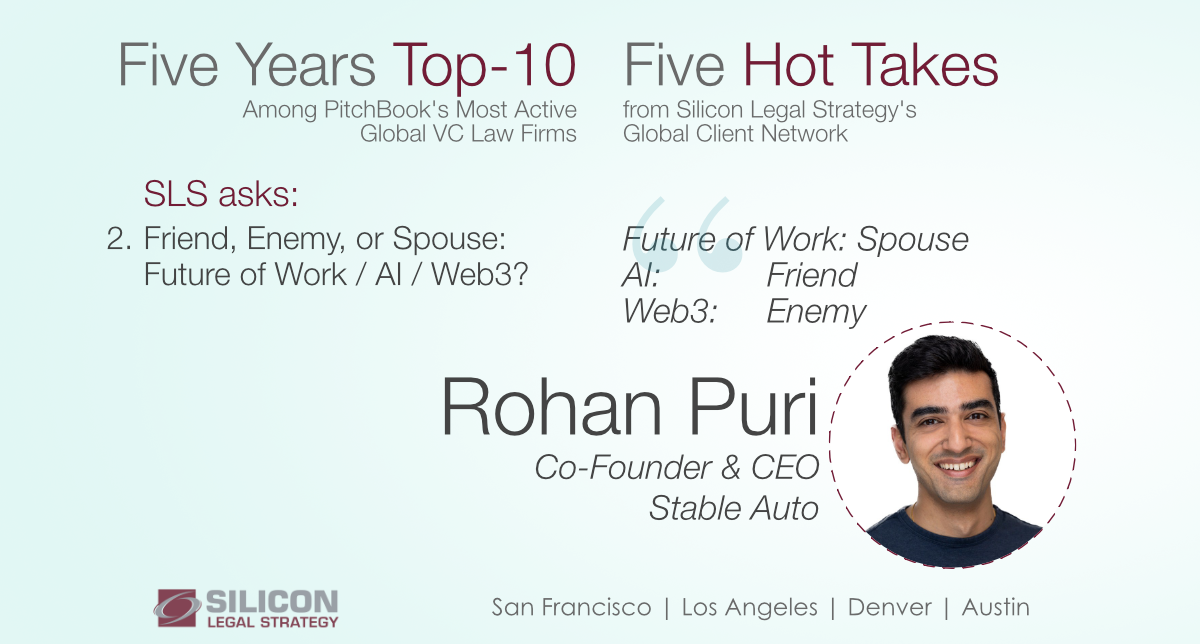 For five consecutive years, Silicon Legal has been recognized by PitchBook among the top 10 most active law firms in the VC space.¹ To celebrate, we invited some of our innovative entrepreneur and seasoned investor clients to share their reflections from 2023 and predictions of what lies ahead. Five Hot Takes March 11, 2024 Ryan Gilbert,…